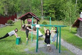 Тренировки проходят утром и вечером на свежем воздухе.
